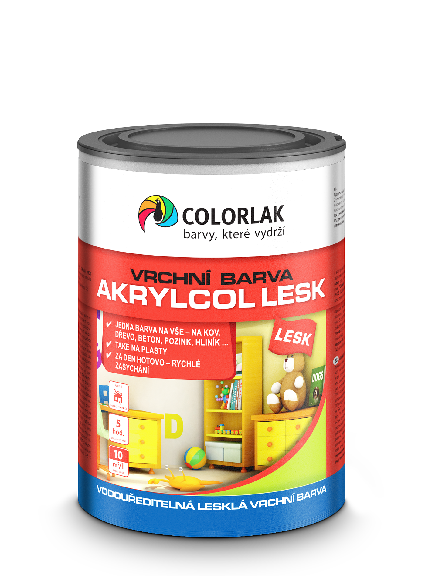 - AKRYLCOL LESK sa môže použiť aj na nátery detského nábytku a hračiek(EN 71 č. 3), a na vybrané druhy plastov (ako umakart, ABS, tvrdé PVC, polystyrén a polykarbonát) a možno ho nanášať priamo na starší pozink.