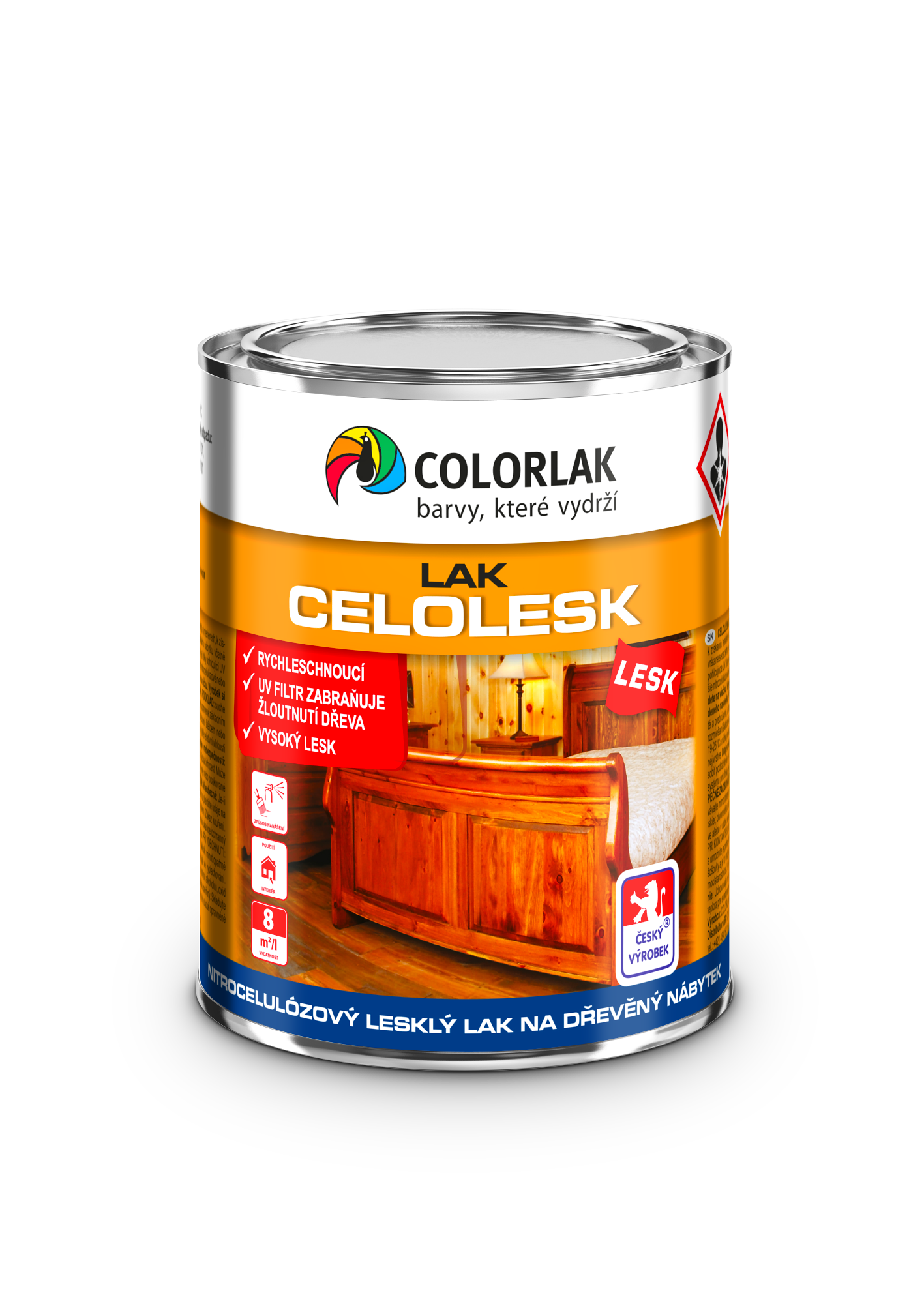 - Lak CELOLESK C1037 je určený na interiérové bezfarebné lesklé povrchové úpravy dreveného a prúteného nábytku (aj sedacieho) a všetkých ďalších drevených a korkových predmetov v interiéri aj na prelakovanie starších nitrocelulózových a akrylátových náterov, (okrem podlahových plôch).