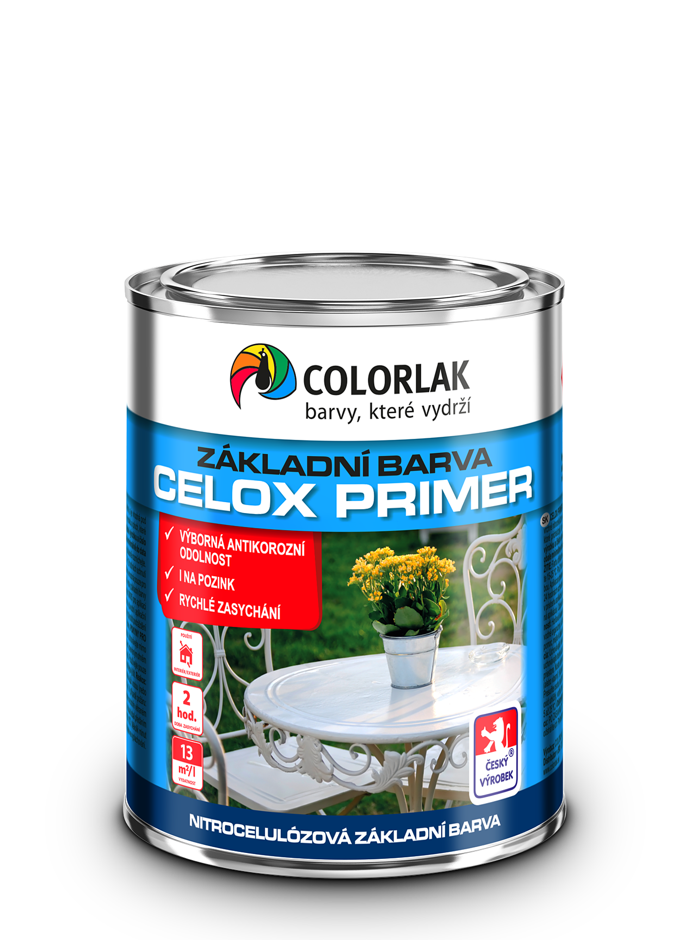- CELOX PRIMER C2000 je základná farba určená na nátery železných kovov vrátane pozinku, je vhodná pod vrchné nitrocelulózové a akrylkombinačné farby na vnútorné použitie.