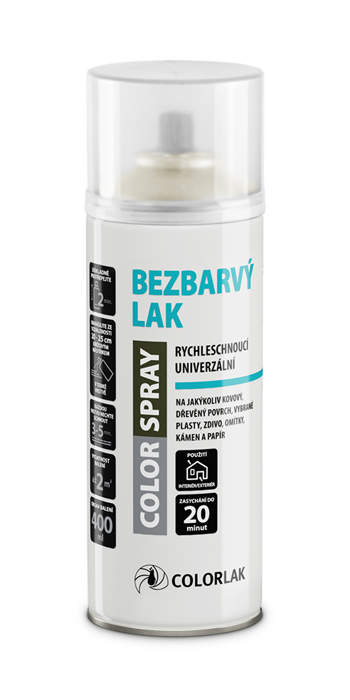 - COLORSPRAY BEZFAREBNÝ LAK je univerzálny akrylátový rýchloschnúci bezfarebný lak v lesku (pololesku, mate), pre vnútorné a vonkajšie použitie.