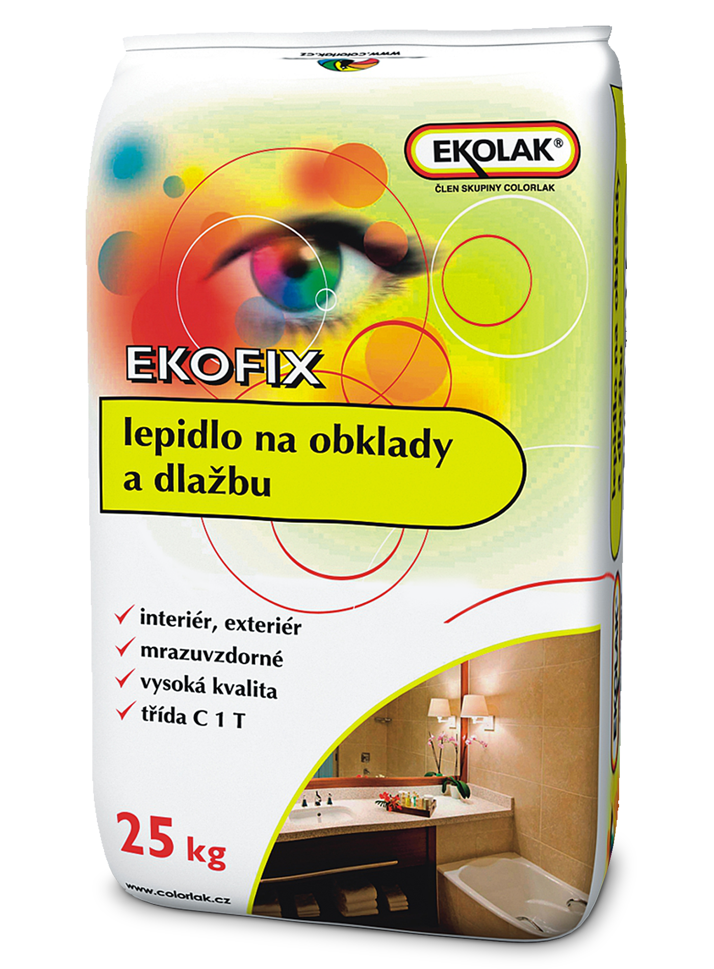 EKOFIX je kvalitná suchá mrazuvzdorná lepiaca zmes určená na lepenie keramických dlaždíc, sklenených obkladov, dlažby a mozaiky na omietky, sádrokartónové dosky, betón, ľahčený betón a plynosilikáty.