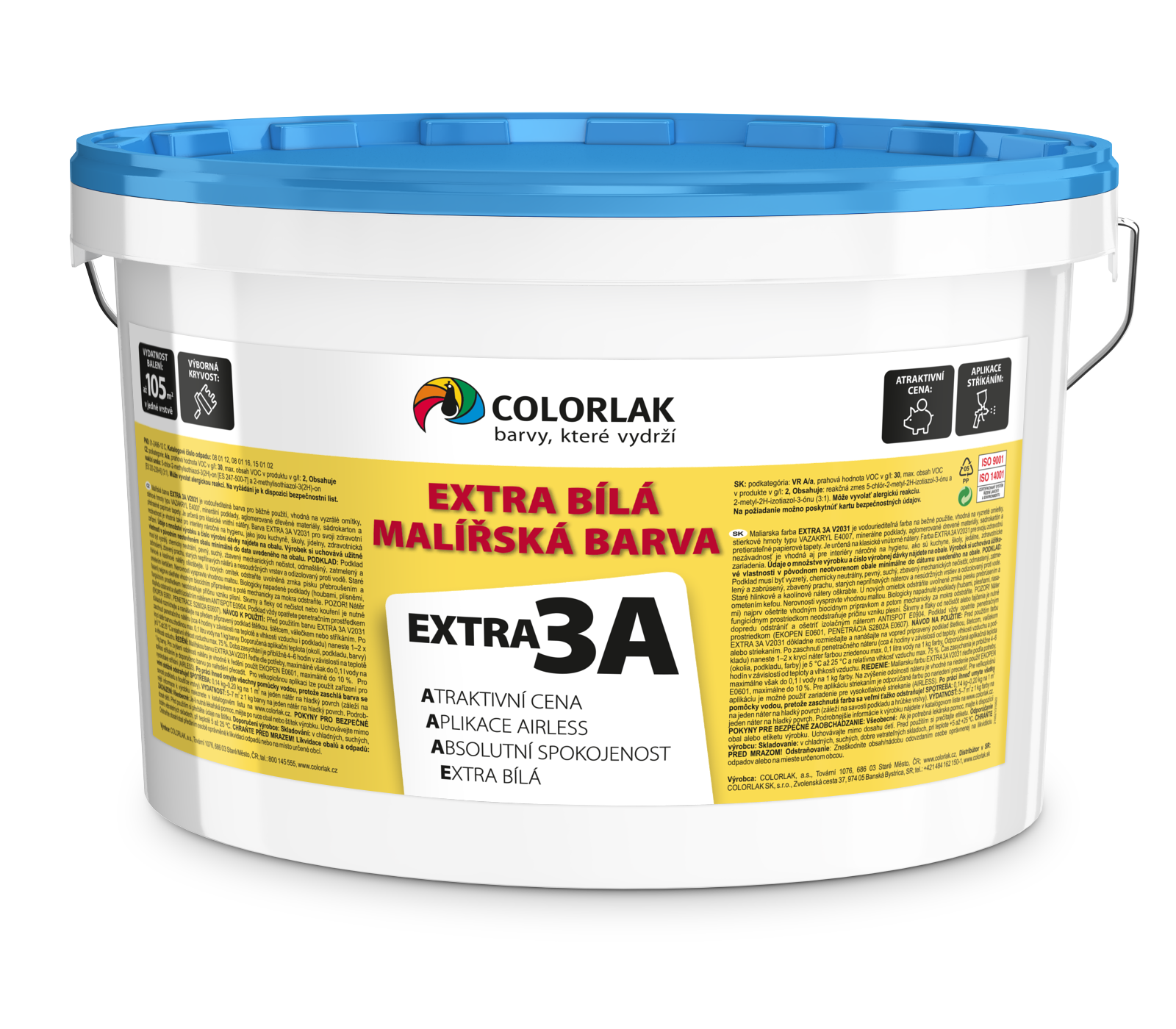 EXTRA 3A je vodou riediteľná biela matná hladká interiérová maliarska farba na okamžité použitie. EXTRA 3A sa vyznačuje vysokou kryvosťou a oteru odolnosťou, výbornou paropriepustnosťou a výdatnosťou. EXTRA 3A je určená na nátery vyzretých omietok, muriva, sadrokartónu, aglomerovaných drevených materiálov, cementotrieskových dosiek, betónových plôch a pretierateľných papierových tapiet. EXTRA 3A slúži na klasické interiérové nátery a pre svoju zdravotnú nezávadnosť je vhodný tiež pre interiéry náročné na hygienu ako sú kuchyne, školy, jedálne a zdravotnícke zariadenia. Náter môže prísť do náhodného styku s potravinami, nie je však pro tento účel určený.