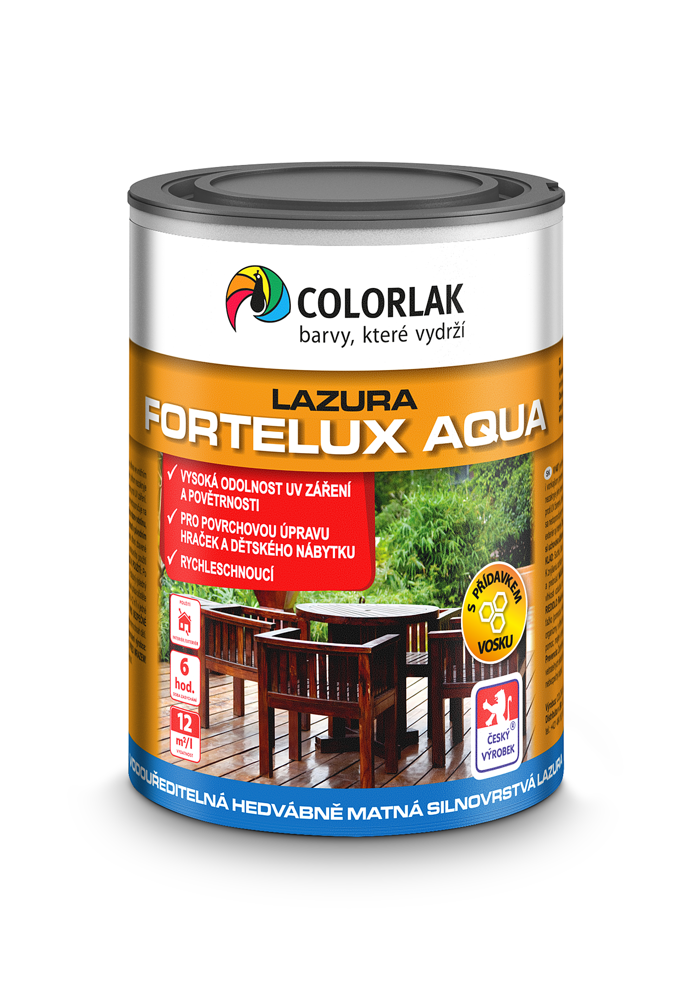 - FORTELUX AQUA je elastický a vyznačuje sa vynikajúcou priľnavosťou k podkladu. Zvlášť vhodný je na povrchovú úpravu drevených okien, dverí, obkladov, podhľadov, štítov a pod.