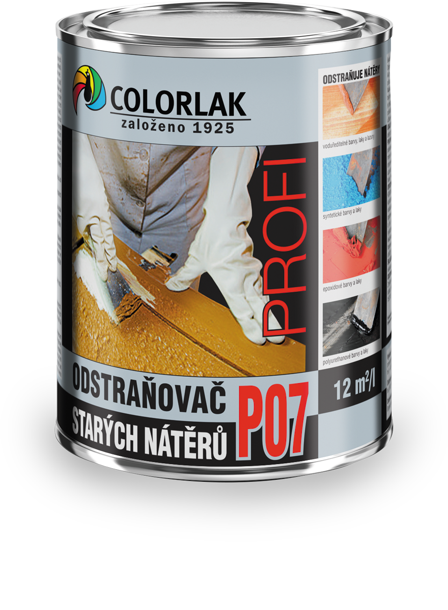 ODSTRAŇOVAČ STARÝCH náterov P07 je moderný gélový odstraňovač s vysokou účinnosťou a univerzálnym použitím. P07 odstraňuje nátery na báze vodouriediteľných disperzií, olejových, syntetických, nitrocelulózových, dvojzložkových epoxidových a polyuretánových náterových hmôt z kovových, drevených a betónových podkladov . Veľmi dobre čistí od všetkých uvedených náterových hmôt, použité štetce (na 24 hodin vložte do gélu a druhý deň sú ako nové). Vďaka gélovej konzistencii sa P07 veľmi dobre aplikuje a nesteká ani zo zvislých plôch. P07 neobsahuje lúhy ani kyseliny, šetrí tak predovšetkým kovy, nekorodujú.