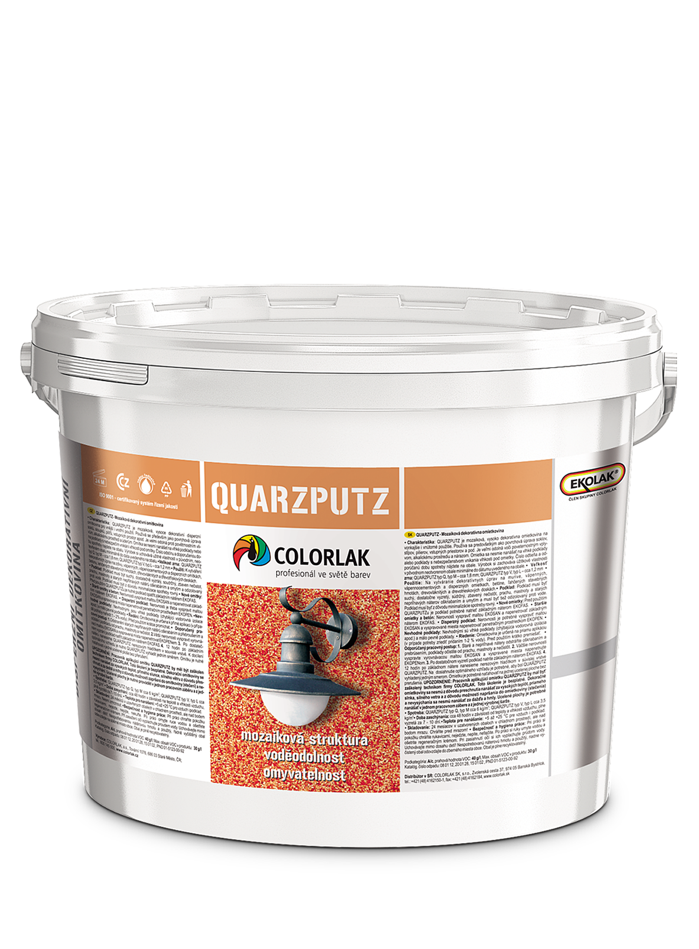 QUARZPUTZ je mozaiková, dekoratívna disperzná omietka na vonkajšie a vnútorné použitie. Používa sa predovšetkým ako povrchová úprava soklov, stĺpov, vstupných priestorov a zatepľovacích systémov. Je veľmi odolná pred poveternostným vplyvom, alkalickému prostrediu a úderom. Omietka sa nemôže nanášať na vlhké podklady alebo na podklady s nebezpečným vnikaním vlhkosti pod omietky.