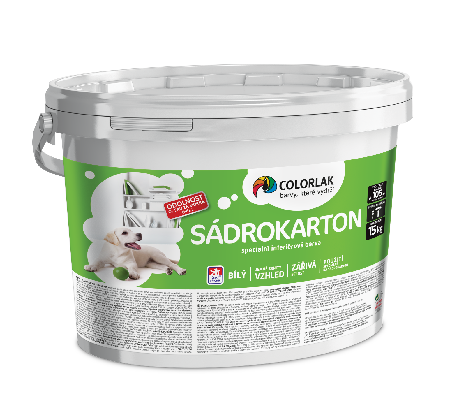 Sádrokartón V2531 je špeciálna biela matná jemne zrnitá disperzná interiérová maliarska farba na okamžité použitie. Sádrokartón sa vyznačuje vysokou odolnosťou oteru za sucha, dobrou odolnosťou oteru za mokra (umývateľnosťou), vynikajúcou paropriepustnosťou a vysokou krycou schopnosťou. Sádrokartón má hlavné využitie predovšetkým pri maľování veľmi hladkých plôch ako je sádrokartón, kde vytvára jemnú štruktúru štukovej omietky. Sádrokartón je určený tiež na použitie na murivo, vápenné, vápennocementové, sádrové a sanačné omietky, betón, drevovláknité a drevotrieskové dosky, tapety a na pretieranie starých náterov. V2531 slúži na nátery najrôznejších interiérov (byty, RD, kancelárie, hotely, školy a pod.) s požiadavkami na zjednotenie povrchu – zrnitosti pri štukových a hladkých plochách s vysokou odolnosťou oteru a priľnavosťou na podklad. Sádrokartón spĺňa požiadavky na nátery povrchov, ktoré môžu prichádzať do nepriameho alebo priameho náhodného styku s potravinami.