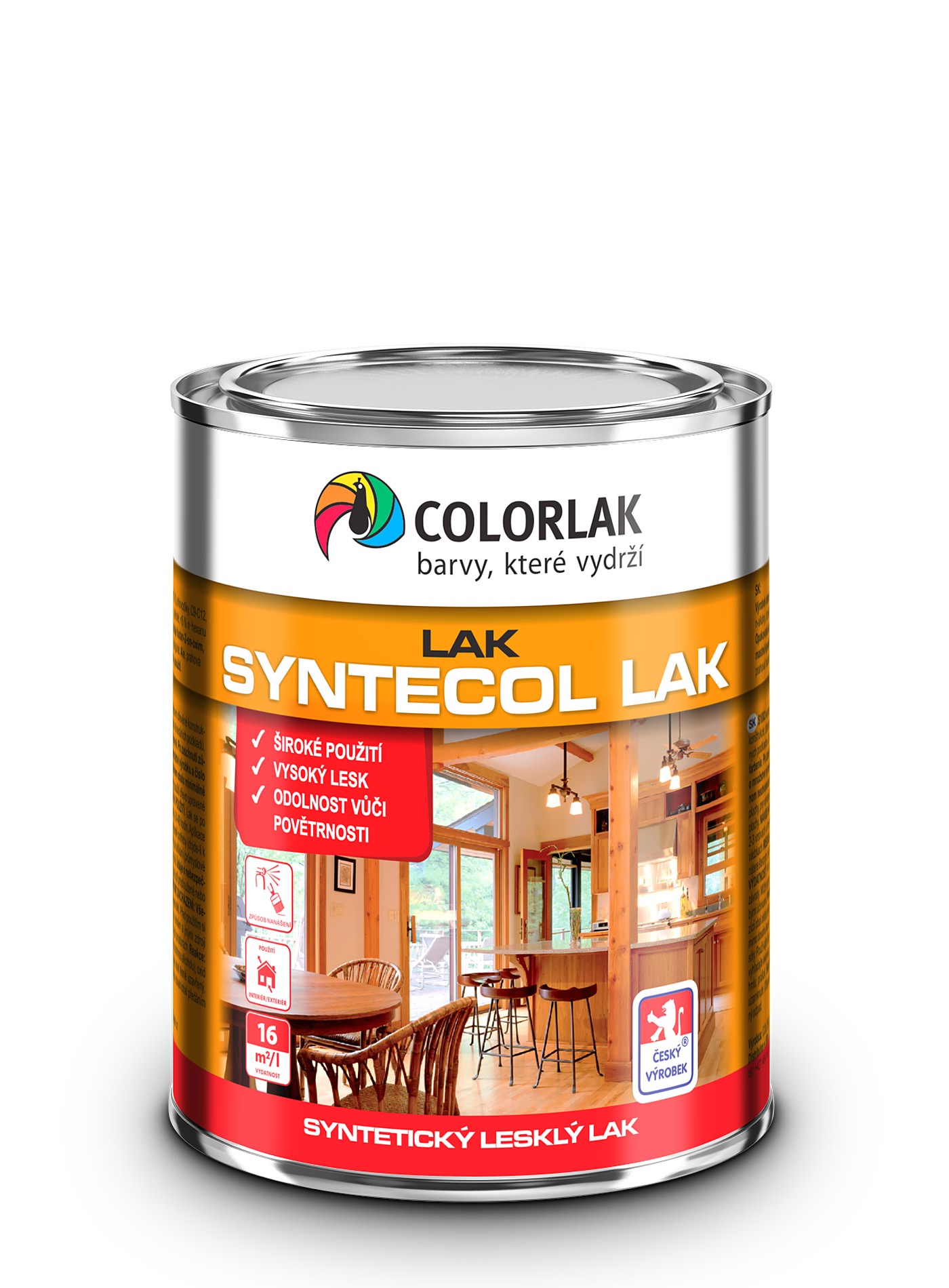 - V kvapalnej forme (vplyvom zloženia) má lak nažltnuté a mliečne zafarbenie, ktoré sa chvíľu po nátere úplne zmení na bezfarebný číry film.